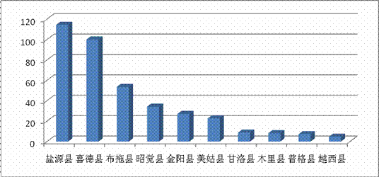 2004年至2006年,全州共实施搬迁6104户29185人。11个县中,搬迁数最多的是盐源县,共搬迁928户4666人,搬迁户数占全州搬迁总户数的15.2%;最少的是雷波县,搬迁120户600人,搬迁户数仅占全州搬迁总户数的1.97%。详细搬迁情况见下图表: